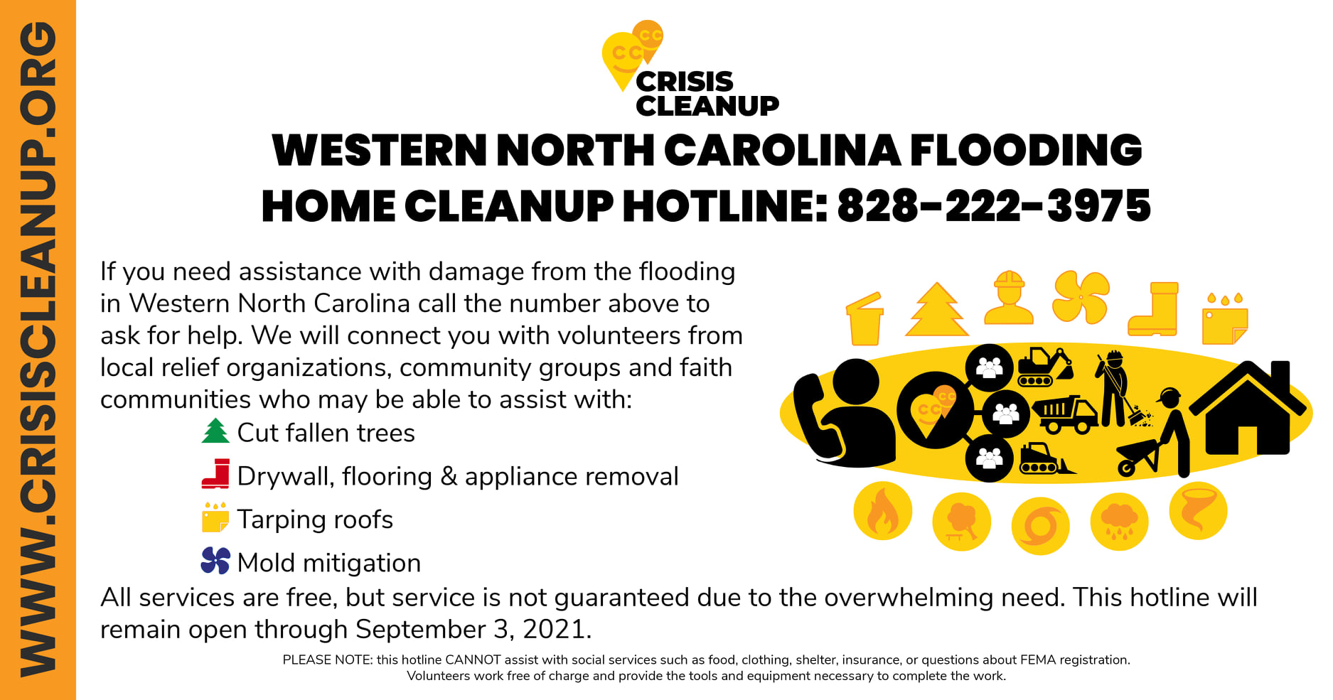 Nc Emergency Management On Twitter Need Assistance With Damage From The Flooding In Western Nc Call 828 222 3975 Crisiscleanup Will Connect You With Volunteers Who May Be Able To Assist All Services Are